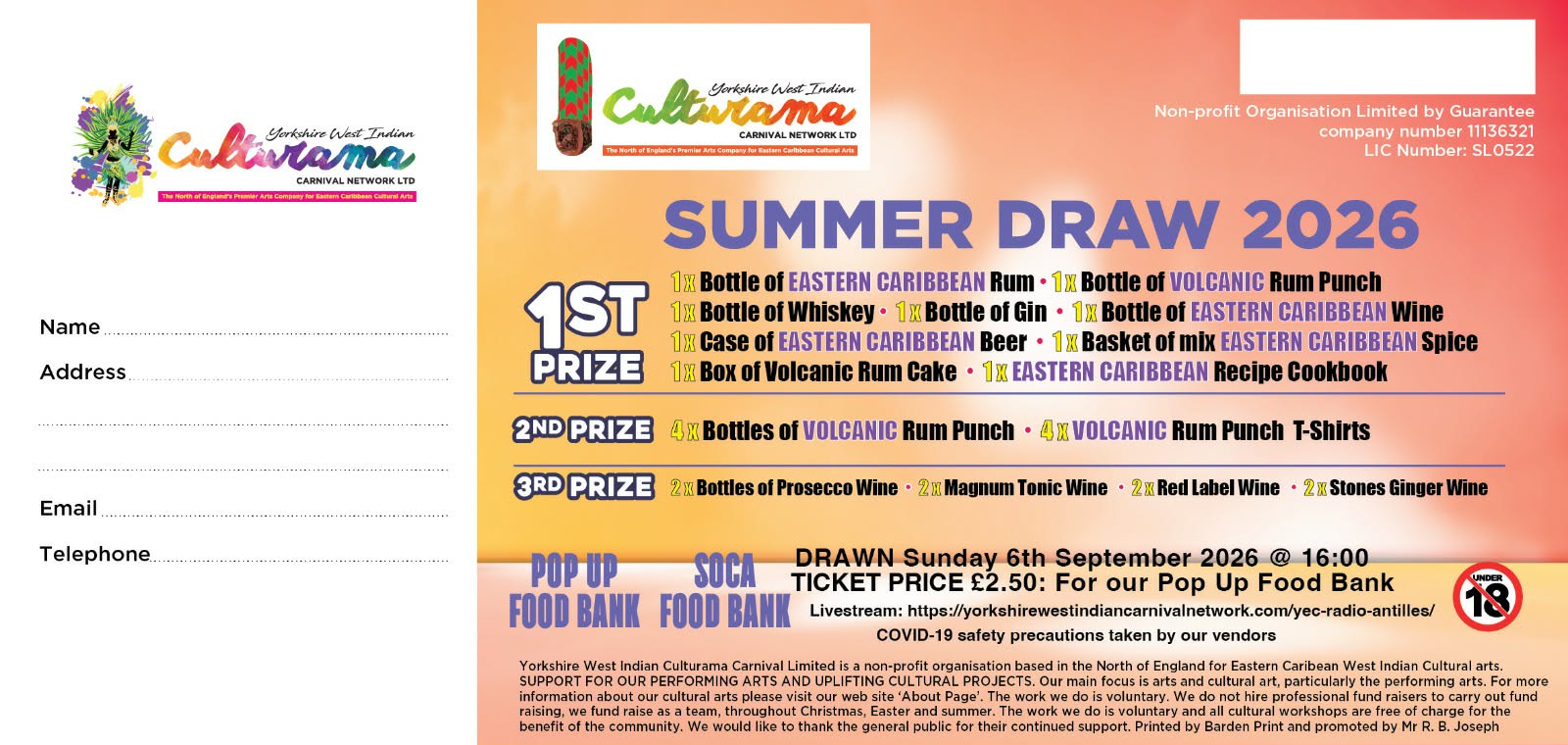 Yorkshire West Indian Culturama Carnival Network has a very unique way of promoting raffles. We give the general public a chance to win big on every special occasion. If you win our Summer raffle you will have a lot of prizes for the holidays, if you win our Summer raffle you will have enough prizes for the Autumn and Winter, and if you win our Winter raffle you will have enough booze for the New Year. Our Eastern Caribbean way is to celebrate these occasions well.
